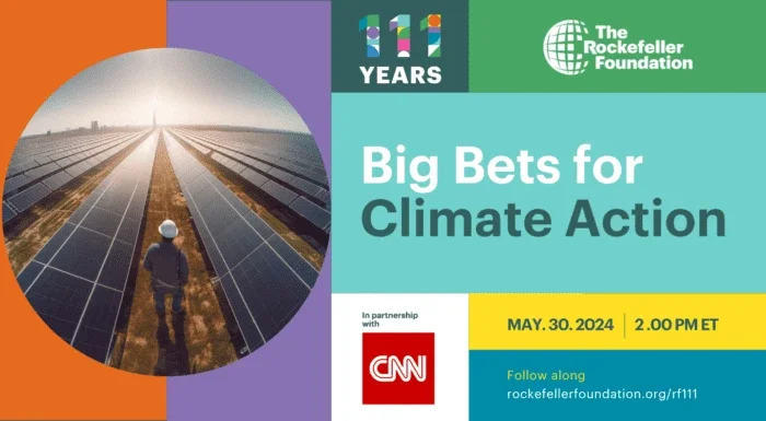 In May 2024 The Rockefeller Foundation celebrated 111 years of promoting humanity’s well-being. We celebrated it with RF111, an event featuring fireside chats and remarks providing insights into the intersection of climate change, diplomacy, policy, creativity, and intergenerational collaboration. -